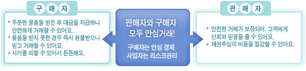 ÀüÀÚ»ó°Å·¡»ó¿¡¼ ÆÇ¸ÅÀÚ¿Í ±¸¸ÅÀÚ°¡ °Å·¡ÇÕÀÇ ÈÄ »óǰ¹è¼Û ¹× °áÁ¦°úÁ¤ Áß¿¡ °Å·¡»ç°í¸¦ ¿¹¹æÇϱâ À§ÇÏ¿© Á¦3ÀÚ(¿¡½ºÅ©·Î »ç¾÷ÀÚ)°¡ °Å·¡´ë±ÝÀÇ ÀÔÃâ±ÝÀ» °øÁ¤ÇÏ°Ô °ü¸®ÇÔÀ¸·Î½á ¸Å¸Å¸¦ º¸È£Çϰí, ÆÇ¸ÅÀÚ¿Í ±¸¸ÅÀÚ °£ÀÇ °Å·¡¾ÈÀüÀ» µµ¸ðÇÏ´Â ¼ºñ½ºÀÔ´Ï´Ù.